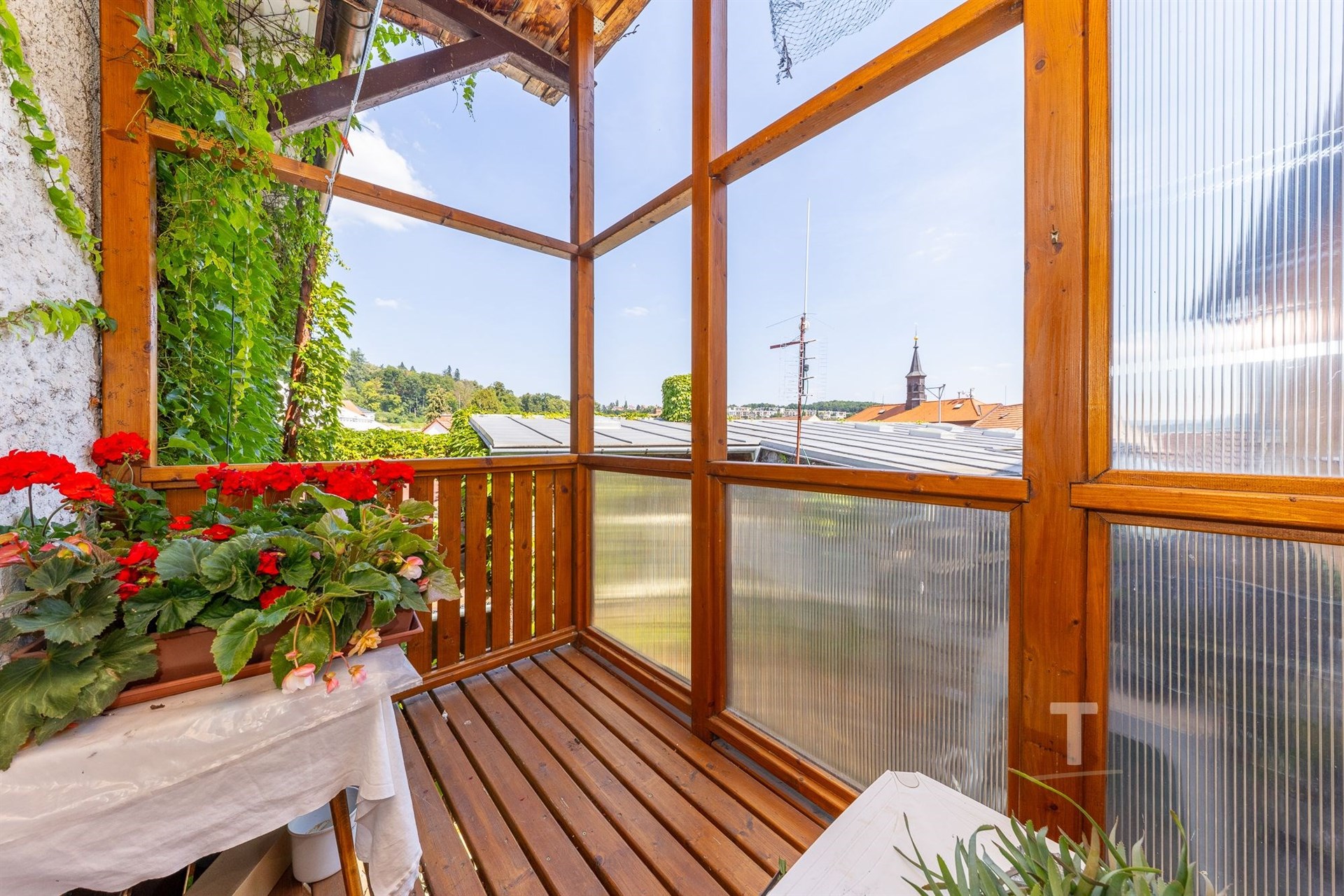 Dispozice bytu je následující: chodba (18,2 m2), obývací pokoj s kuchyní (38,4 m2), spíž (2,4 m2), pokoj č. 1 (17,8 m2), pokoj č. 2 (16 m2), koupelna (10,4 m2), samostatné WC (1,7 m2), pracovna (9,2 m2), navazující lodžie (4,7 m2), terasa (7,4 m2) a sklep (cca 35 m2), garáž (18 m2). Součástí kuchyňské linky jsou i kachlová kamna, která jsou plně funkční a tvoří zajímavou část kuchyňské linky.