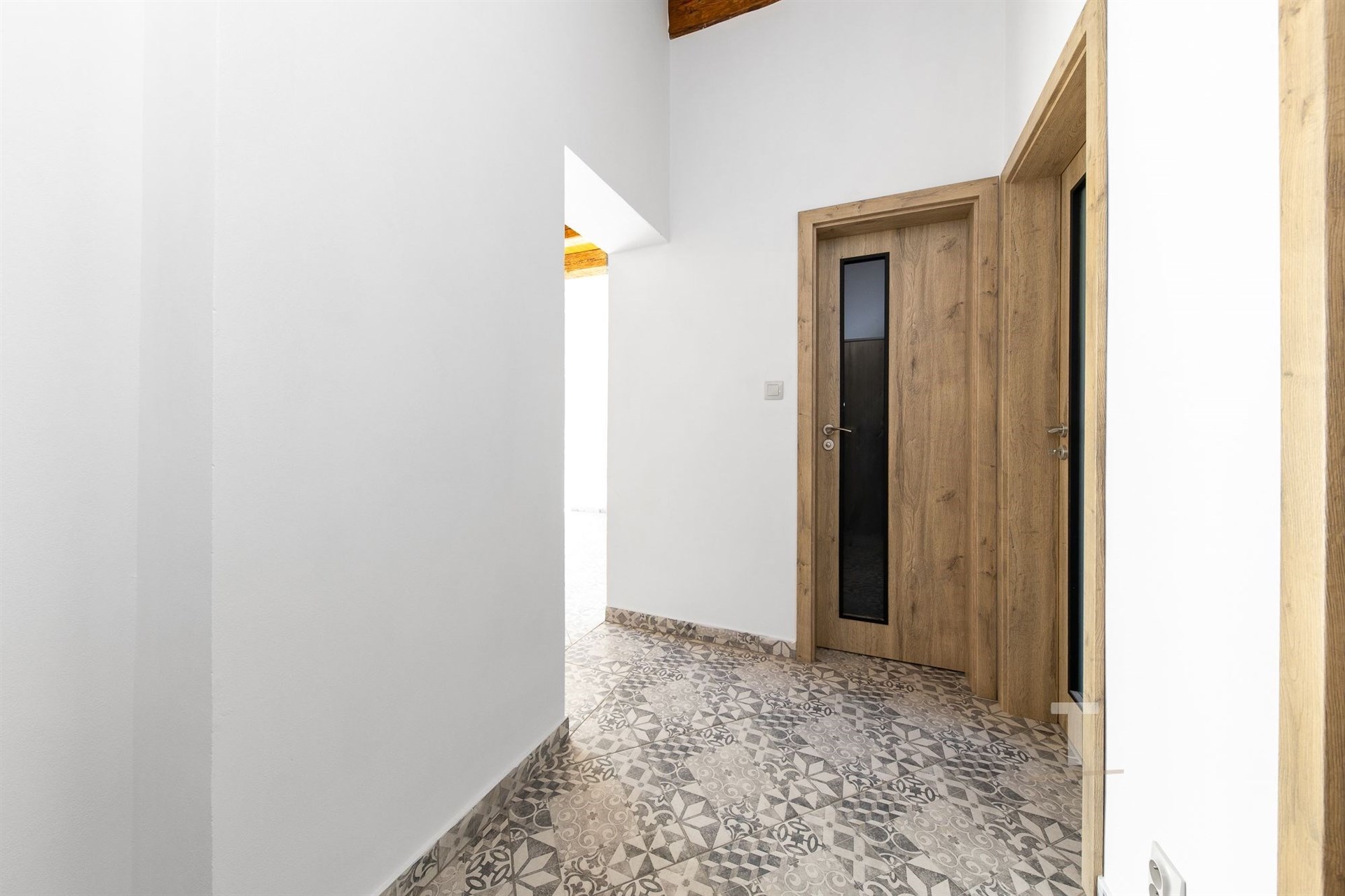 Ve vnitřní části: položení kompletně nových podlah, včetně odvětrání podlah vzduchem, zavedeno podlahové topení, rozvedena elektřina, voda a odpady až do hlavního řádu. Osazení rekuperace, renovace původních částí dřeva, schodiště, rekonstrukce koupelny, WC, osazení vnitřních dveří. K průběhu rekonstrukce jsou k dispozici fotografie, průběh je tedy doložen! Vybudována byla i nová terasa.