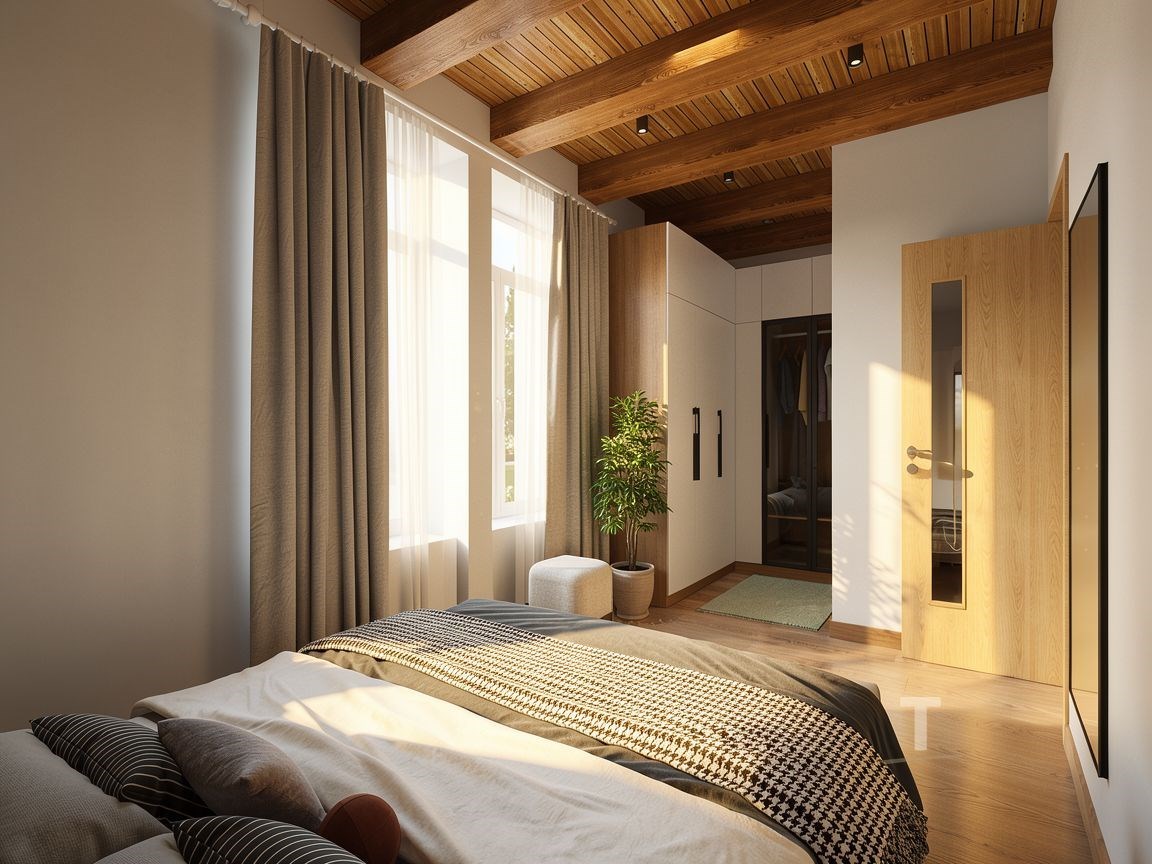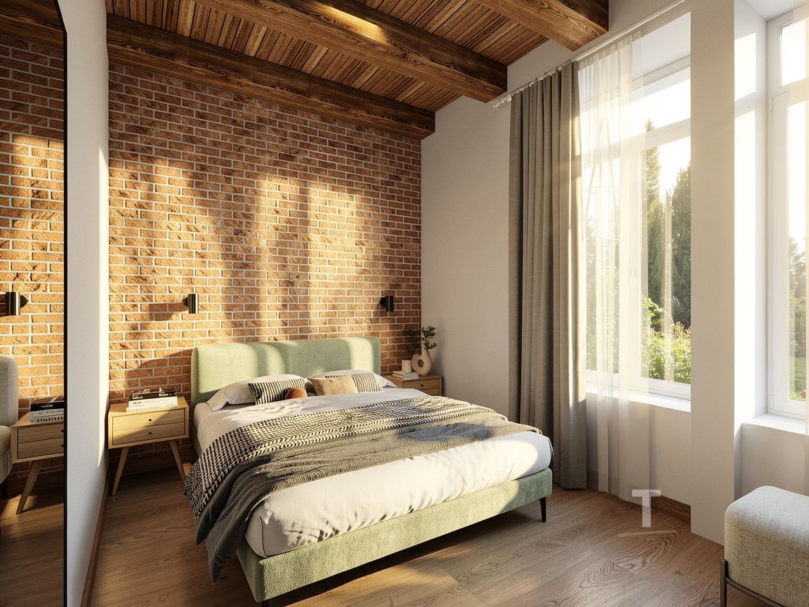 Zrekonstruovaný byt ve velmi osobitém, až industriálním stylu. Jedinečnost provedení podtrhuje fakt, že si majitelé vyhráli s přiznáním jak zdiva, tak původních zachovalých trámů a domu dominují otevřené prostory, kde výšky stropů jsou až ve 3,3 metrech. Zároveň však s použitím moderních technologií, jako podlahového teplovodního topení (a to jak v přízemí, tak v patře), automatického větrání za pomocí vlastní rekuperační jednotky, dále nadkrokevní izolace střechy za přiznání původních trámů v podkroví.