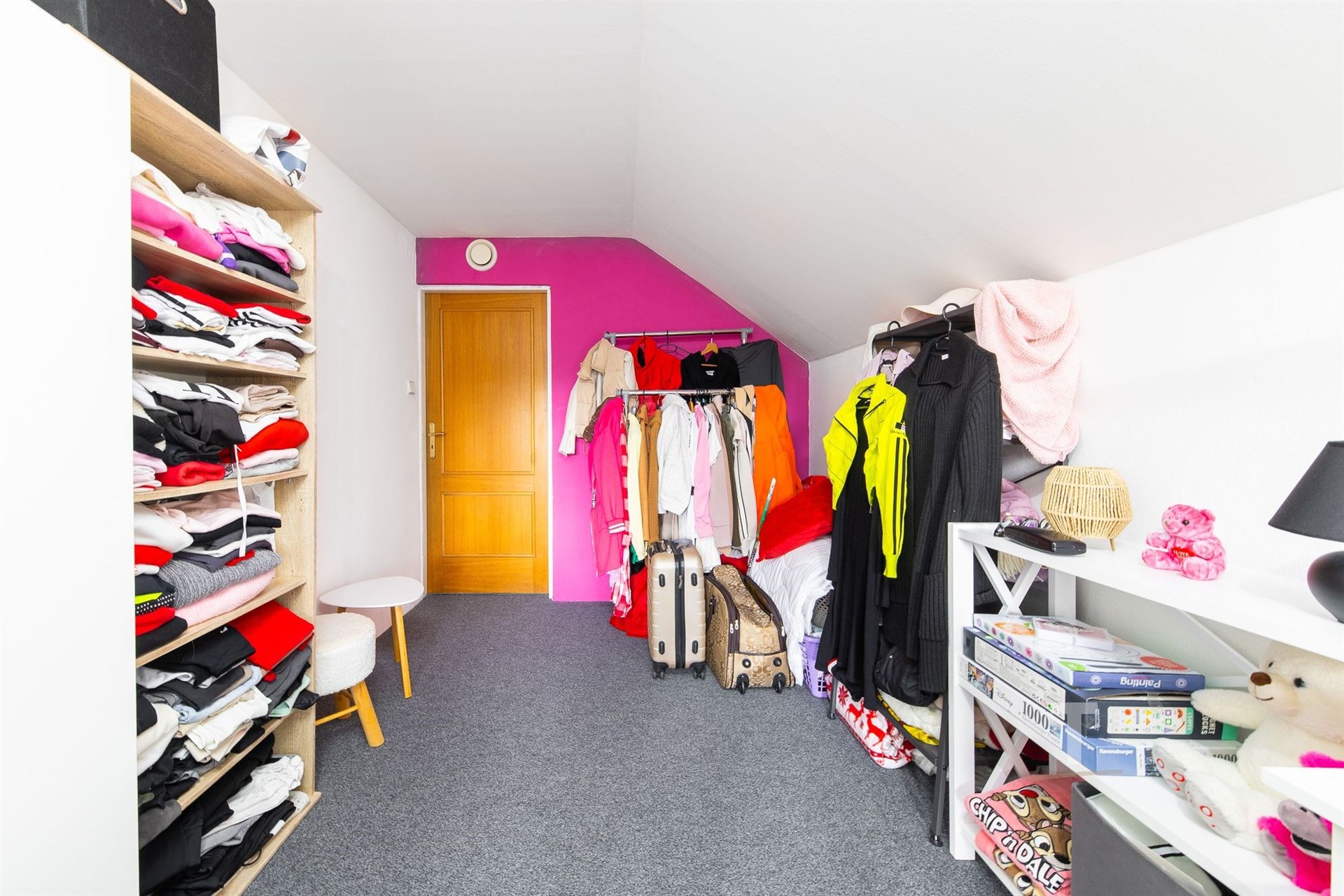 Dispozičně dům nabízí vstupní zádveří (5?58 m²), obývací pokoj s kuchyňským koutem (45,03 m²), chodbu (3,78 m²), koupelnu s WC (9,44 m²) a samostatné WC (1,42 m²). Dále se v domě nacházejí tři samostatné pokoje v podkroví (28,26 m², 16,42 m² a 19,32 m²) a chodba (10,54 m²). V podkroví je příprava na druhou koupelnu. Praktické zázemí doplňuje komora (6,40 m² a 3,19 m²), sklad (7,46 m²) a zádveří (5,58 m²).