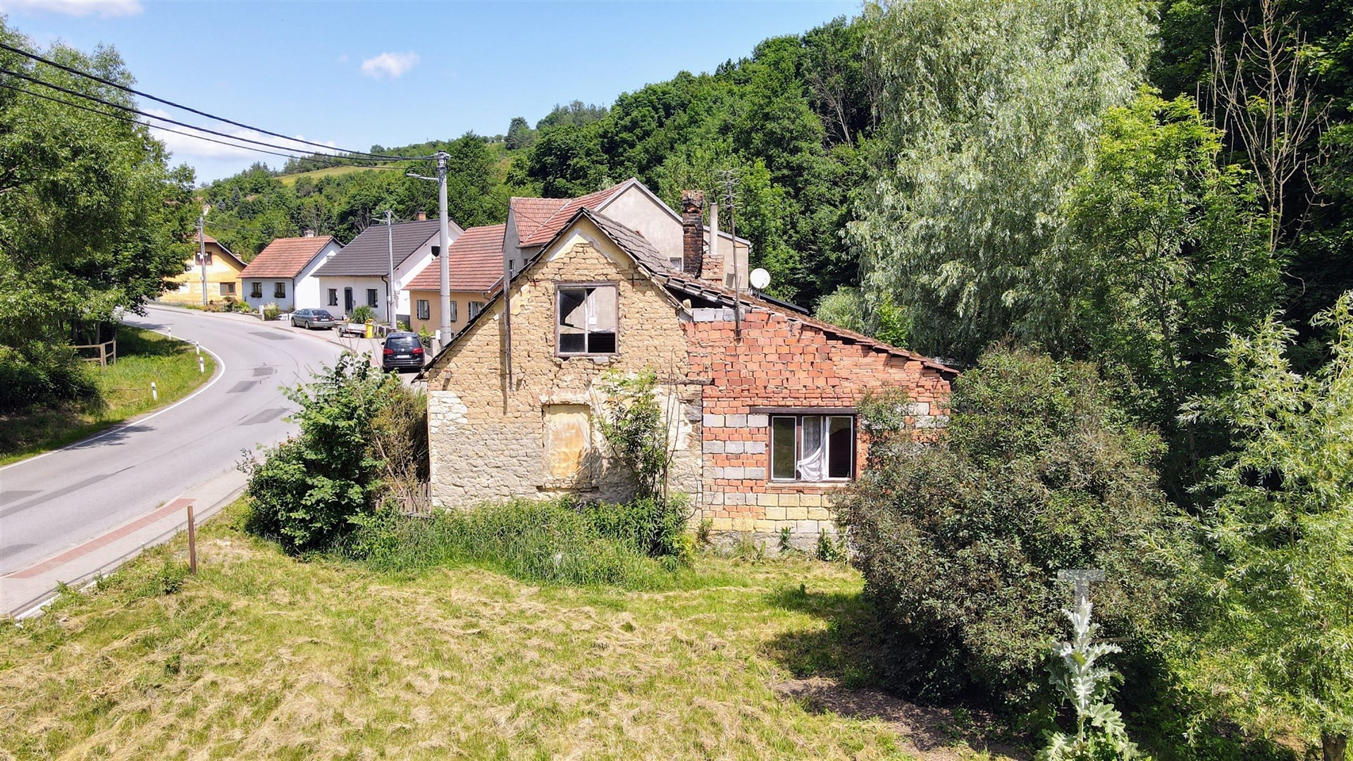 Nemovitost je v současné době odpojena od elektrické energie, nicméně elektřina je přivedena až na pozemek a lze ji snadno znovu připojit. Voda je řešena z místního zdroje, odpad je sveden do jímky a plyn v obci zaveden není. Stávající dům je v neudržovaném stavu a není vhodný k okamžitému obývání – ideálně tedy poslouží jako základ pro důkladnou rekonstrukci nebo bude nahrazen novostavbou.