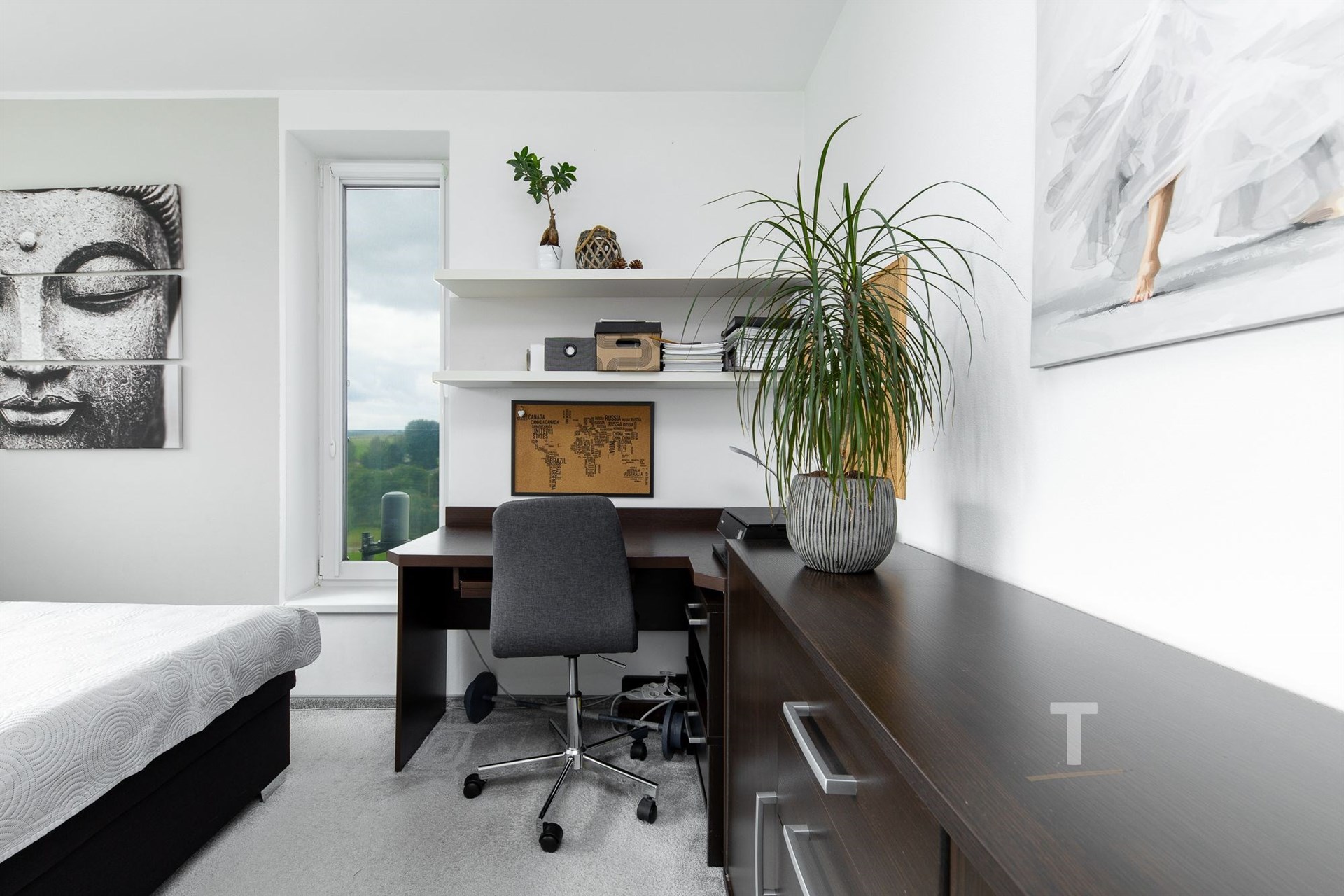 V přízemí se nachází vstupní chodba, světlý obývací pokoj s kuchyňským koutem, krbovými kamny a vstupem na terasu a samostatné WC s umyvadlem. V patře jsou tři pokoje a koupelna s WC. Součástí prodeje je kuchyňská linka se spotřebiči (lednice, myčka, el. trouba, sklokeramická deska, mikrovlnná trouba, dřez s baterií a spíž). Na chodbě jsou vestavěné skříně, které poskytují dostatek úložného prostoru. Orientace obytných místností je převážně na jih, dále na východ a západ, díky čemuž je dům prosluněný po celý den.