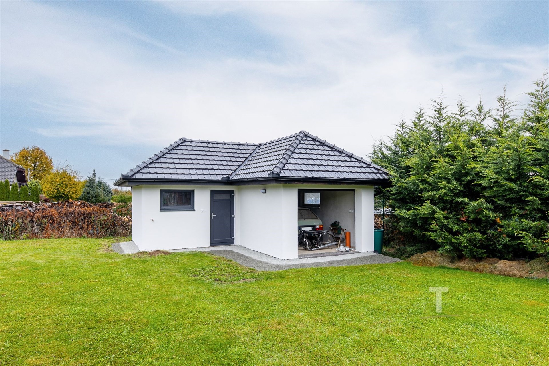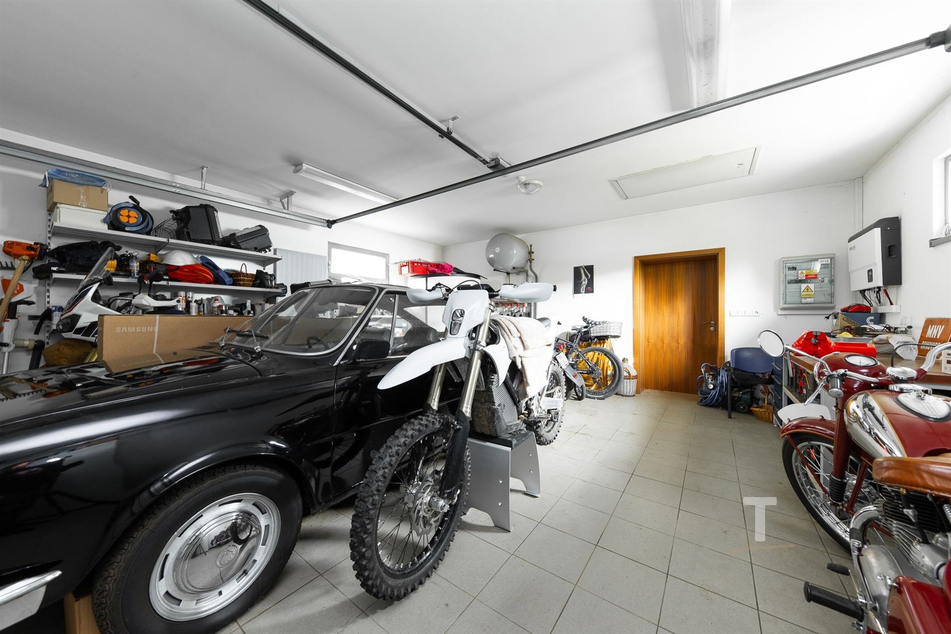 Velkou výhodou je možný přístup na zahradu podél domu (i pro velké nákladní auto), možnost parkování dalších 3 aut před domem na zpevněné ploše. Na zahradě se navíc nachází přístřešek pro další auto či cokoliv jiného. V zadní části zahrady stojí zděný zahradní domek o rozloze 28 m², do kterého je přivedena voda, odpad a elektřina. Uvnitř domku se nachází další garáž a příprava na kuchyni, což znamená, že celý tento prostor může sloužit jako „párty domeček“, malé wellness, posilovna nebo třeba jako dílna pro podnikání.