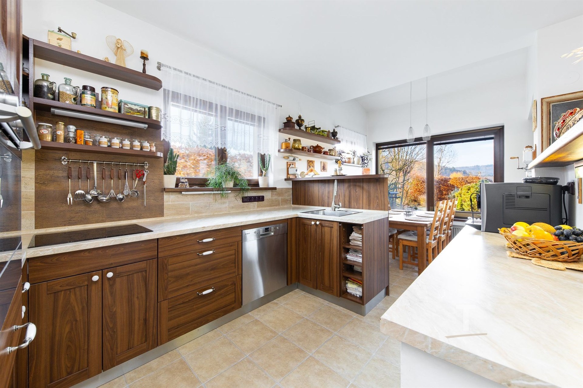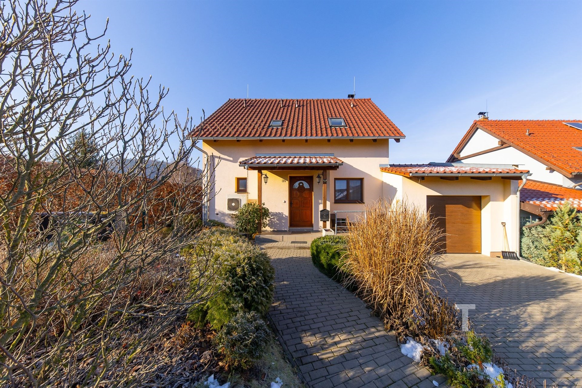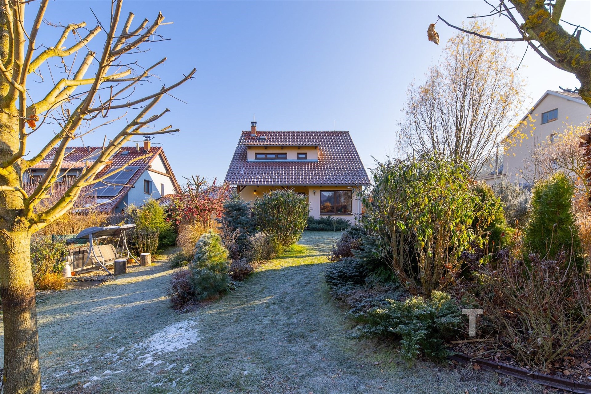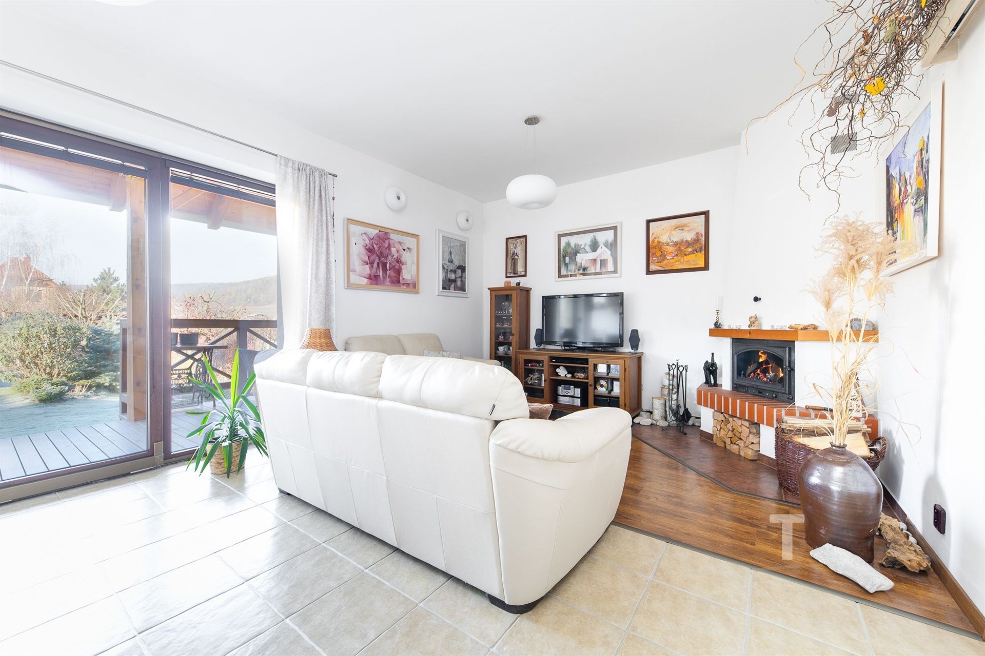 Vytápění je řešeno tepelným čerpadlem v kombinaci s podlahovým vytápěním a radiátory a útulnou atmosféru obývacího pokoje podtrhuje krb, který tvoří přirozené centrum rodinného života. Celková užitná plocha domu činí přibližně 176 m² včetně terasy (cca 10,5 m²) a garáže (cca 38 m²), jejíž součástí je praktická dílna se vstupem přímo z interiéru.