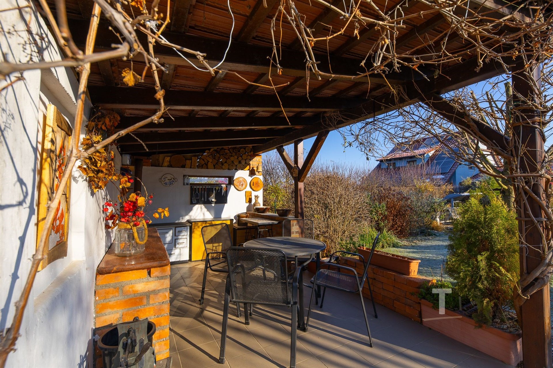 Pozemek o rozloze 1 505 m² je rovinatý, orientovaný na jihozápad a poskytuje velkorysý prostor pro zahradu, venkovní posezení i rodinné aktivity. Součástí venkovní části je také letní kuchyně, která skvěle rozšiřuje možnosti využití zahrady v průběhu celého roku.