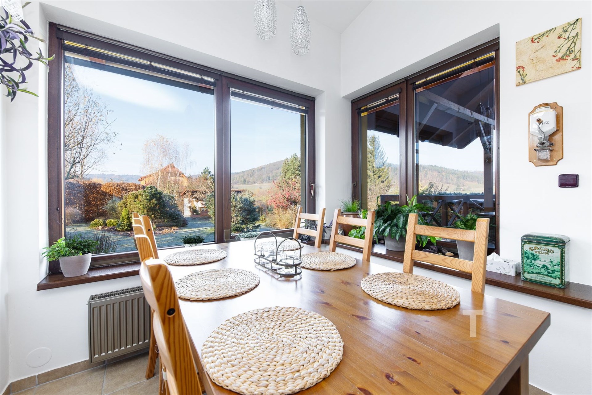 Nemovitost zaujme nejen svým příjemným prosvětlením a zpracováním, ale také velmi praktickým dispozičním řešením, které splní nároky i větší rodiny. Dům spadá do energetické třídy B, což zajišťuje nízké měsíční provozní náklady okolo 4 500 Kč.