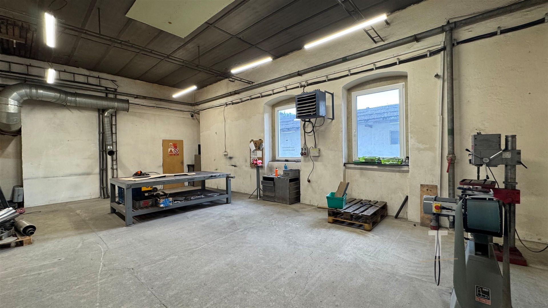 Jedna z místností je o velikosti 65 m2 s výškou stropu 7 m s garážovými vraty o rozměru 3,5 m x 2,5 m přístupné přes rampu.