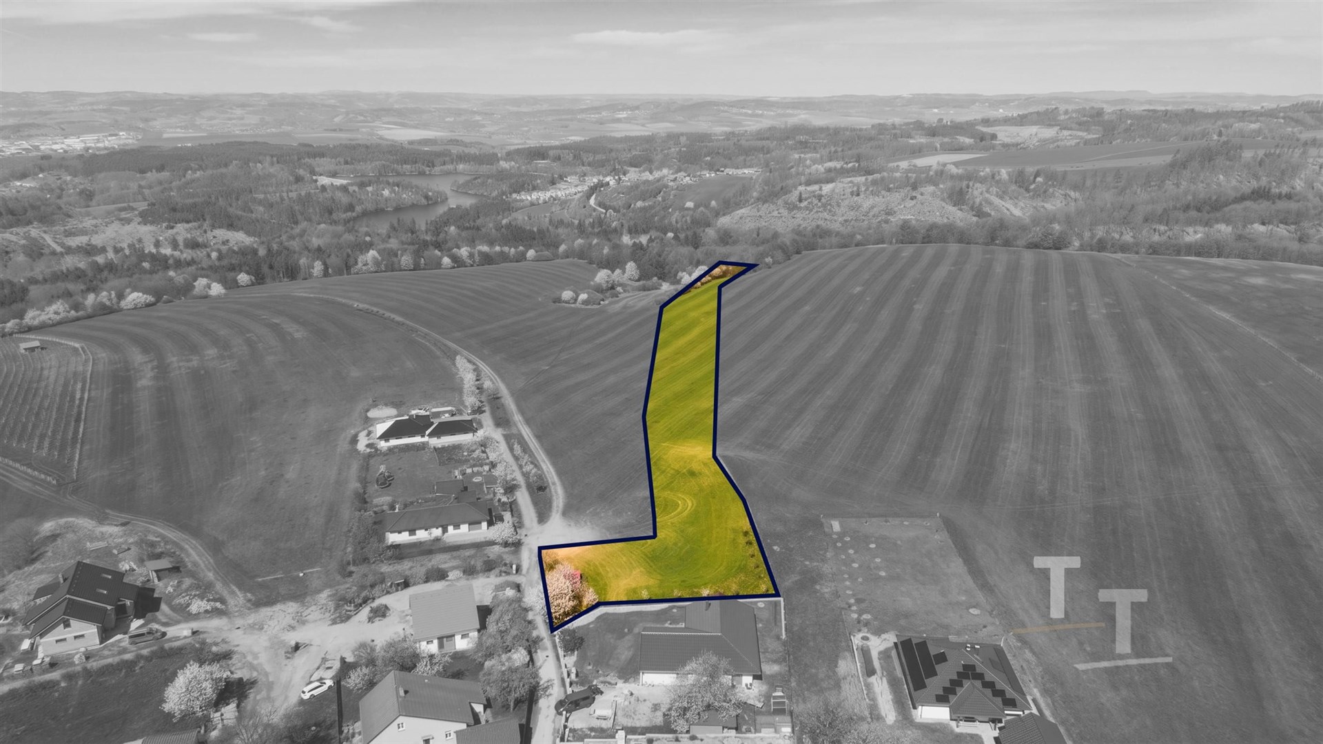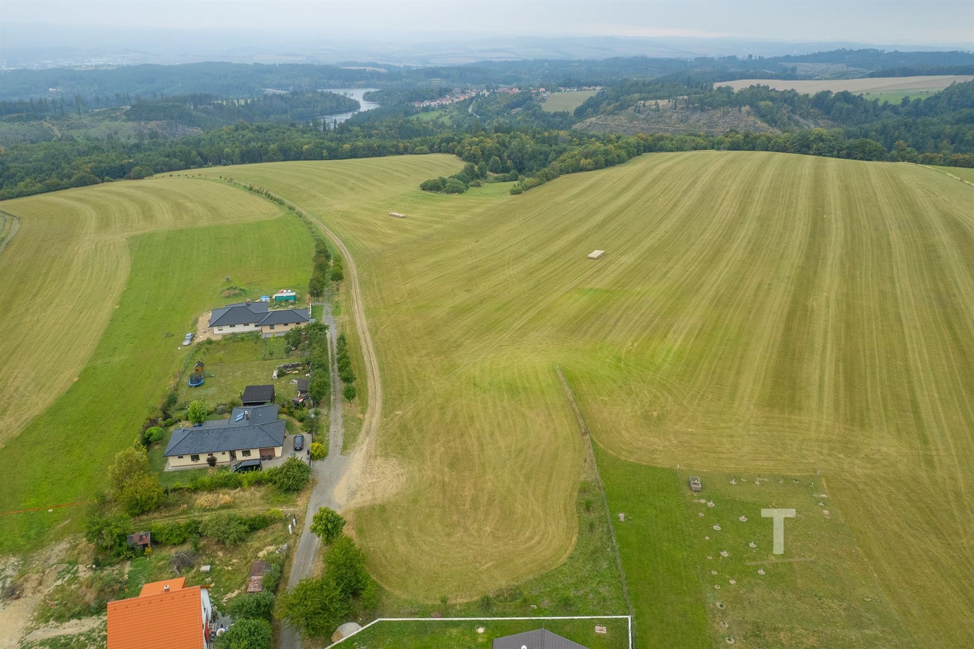 Pozemek je převážně jiho západně orientovaný, kde můžete pozorovat krásné západy slunce. Tvar pozemku je přibližně obdélníkový, pozemek je neoplocený, mírně sklonitý. Celková plocha pozemku činí 12.680 m2, jedná se o funkční celek, tím je pozemek velmi zajímavý o takové velikosti. Na hranici pozemku se nachází el. přípojka, dále u hranice pozemku šachta s možností napojení na veřejný vodovod a veřejnou kanalizaci. Plyn se nachází v dosahu.