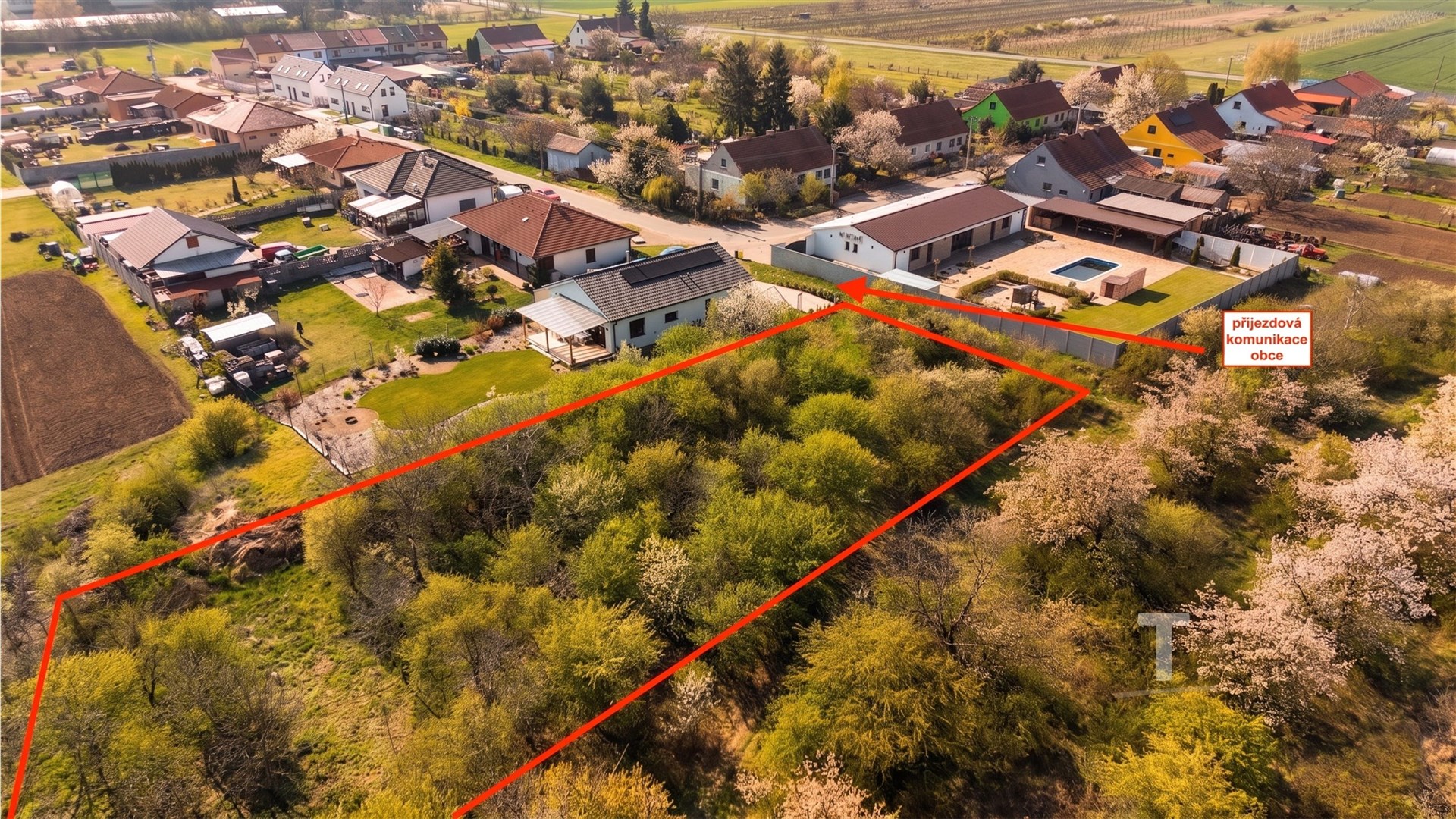 Výhodou je jeho umístění v koncové zástavbě městyse Drnholec, konkrétně v části “ Na Výsluní”. Poloha pozemku poskytuje dostatek soukromí. Téměř obdélníkový tvar pozemku je o rozměrech 24 x 86 m.