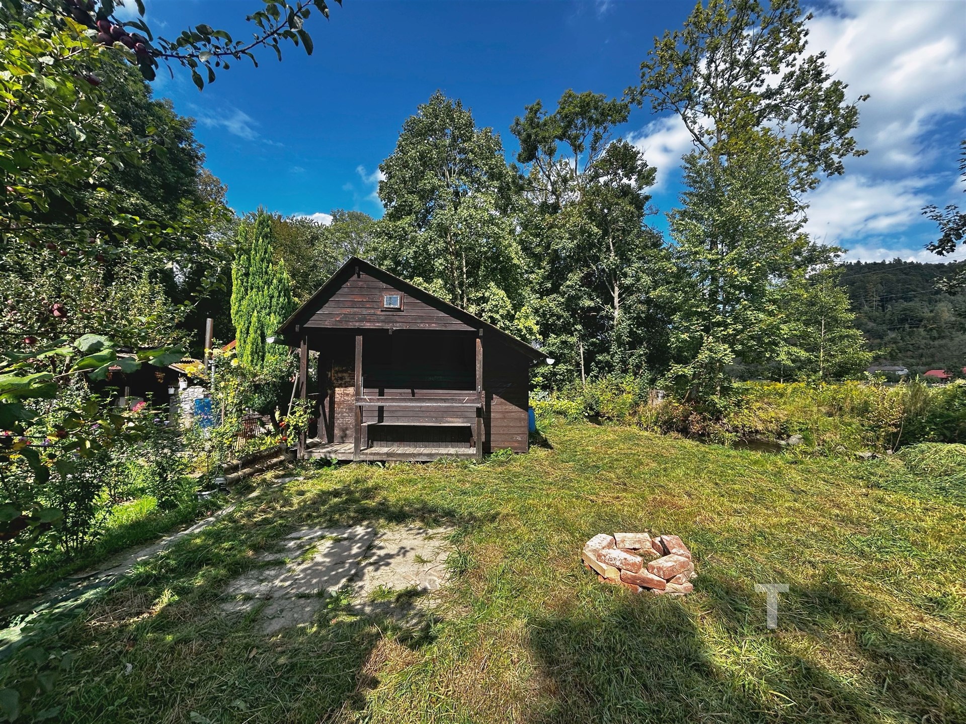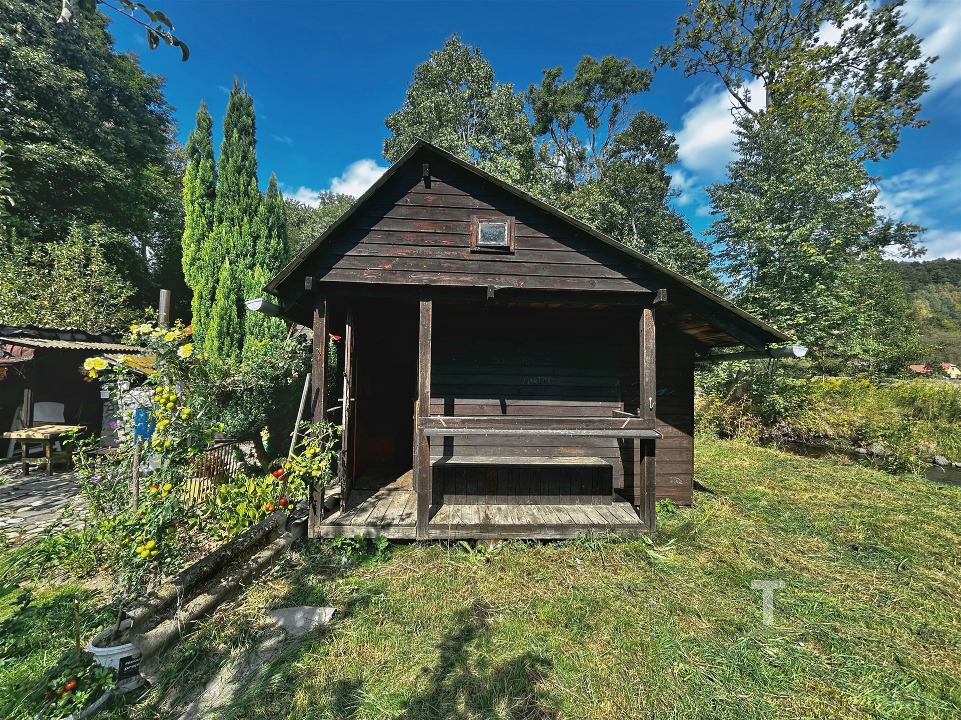 Zahrada s chatkou v blízkosti řeky Moravy