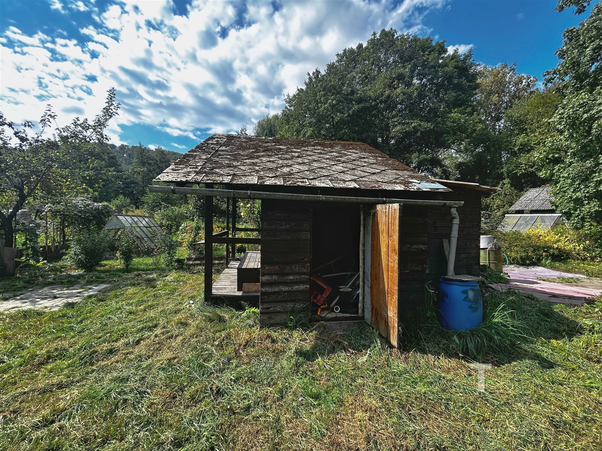 Jedná se o rovinatý pozemek trojúhelníkového tvaru o celkové výměře 250 m2, na kterém se nachází menší dřevěná zateplená chata o zastavěné ploše cca 16 m2.