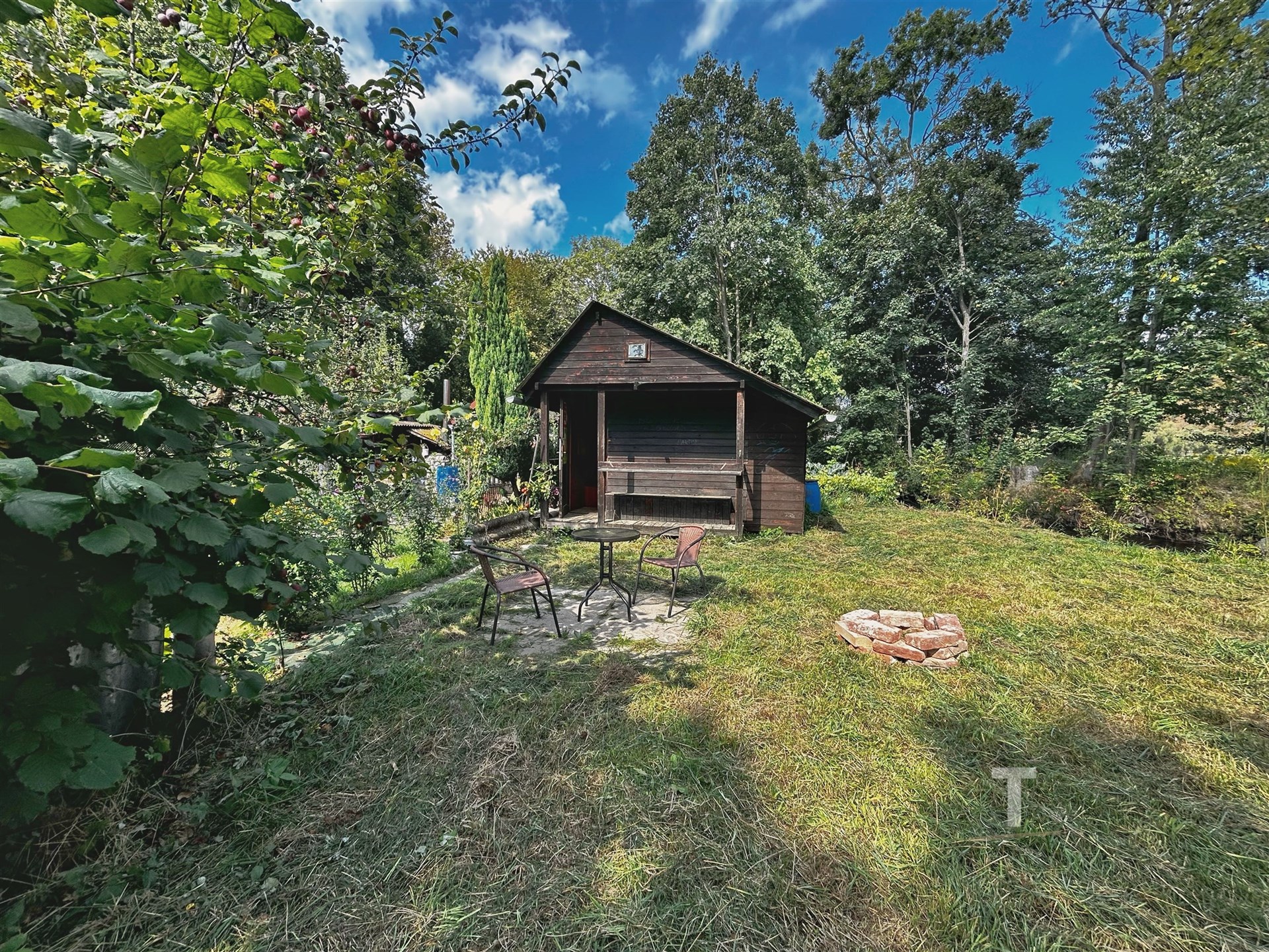 Zahrada s chatkou v blízkosti řeky Moravy