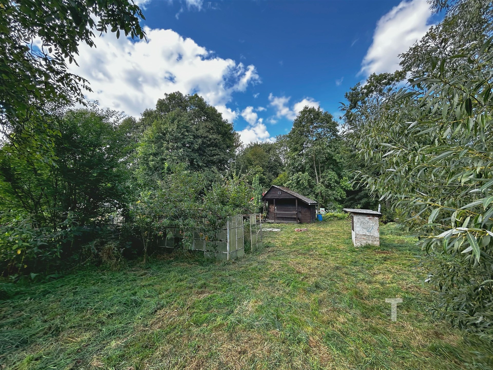 Jedná se o rovinatý pozemek trojúhelníkového tvaru o celkové výměře 250 m2, na kterém se nachází menší dřevěná zateplená chata o zastavěné ploše cca 16 m2.